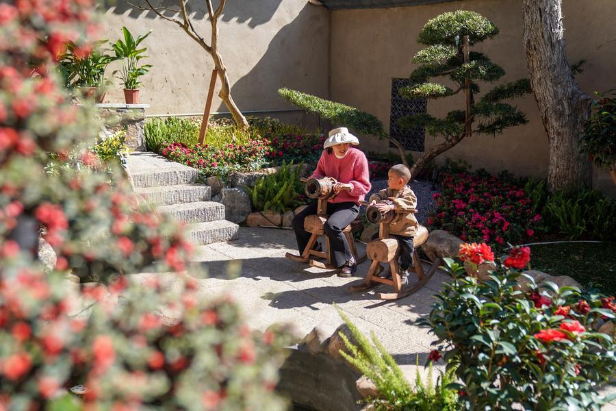Tourists have fun in Baiwu Village of Huize County, southwest China's Yunnan Province, March 24, 2026. Baiwu Village once served as a major hub for south-to-north copper transport during the Ming and Qing dynasties (1368-1911), giving birth to many ancient dwellings and copper transport heritage. In recent years, local authorities have endeavored to boost cultural tourism in the village by preserving and utilizing its traditional architecture, while introducing new businesses including bookstores, coffee shops, and homestays. In 2025, the village received about 245,000 visitors, with 188 households involved in the local tourism industry. (Xinhua/Peng Yikai)