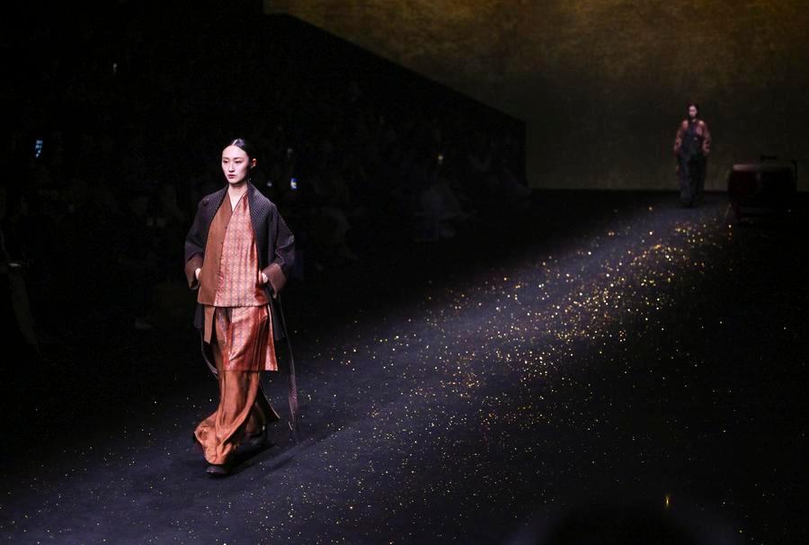 A model presents a creation of HEMU during the 2026 Autumn/Winter Shanghai Fashion Week in east China's Shanghai, March 26, 2026. (Xinhua/Chen Haoming)