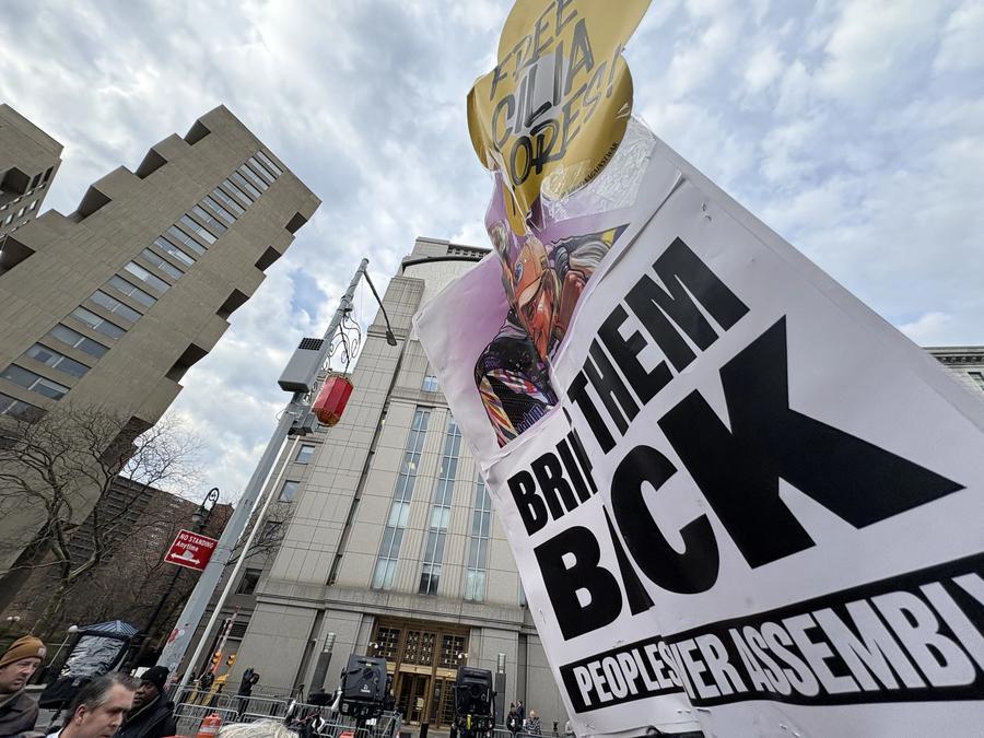 Supporters of Venezuelan President Nicolas Maduro protest outside a courthouse in New York, the United States, March 26, 2026. Venezuelan President Nicolas Maduro made his second appearance Thursday morning in a New York court after his forcible seizure by U.S. troops in a military raid in Caracas early January. (Xinhua/Zhang Fengguo)